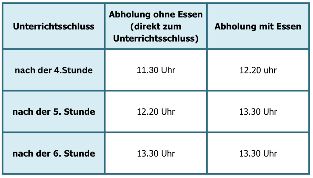 Bitte halten Sie sich daher an die folgenden Abholzeiten: