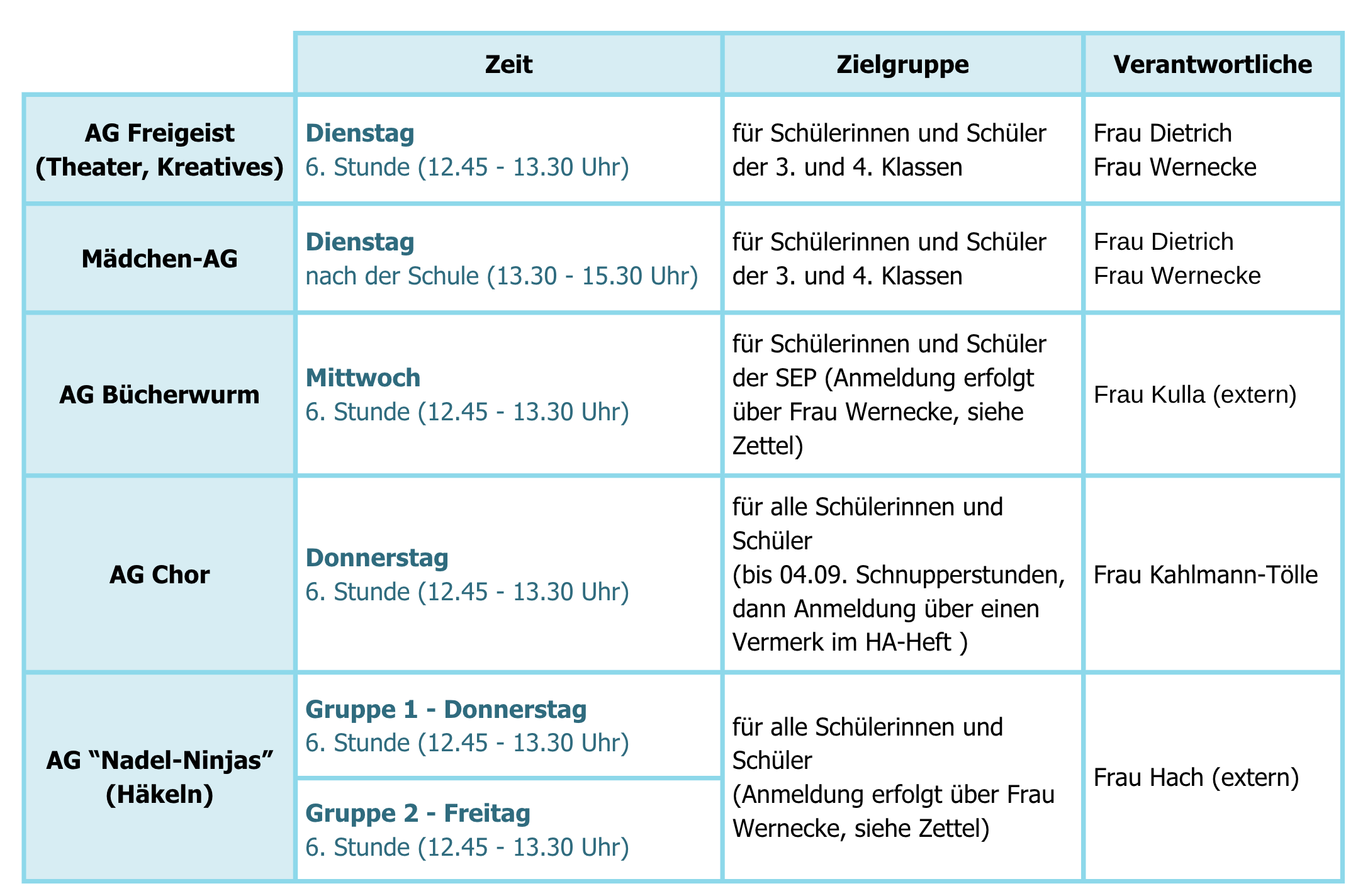 Im Schuljahr 2025/26 können wir folgende Arbeitsgemeinschaften anbieten: